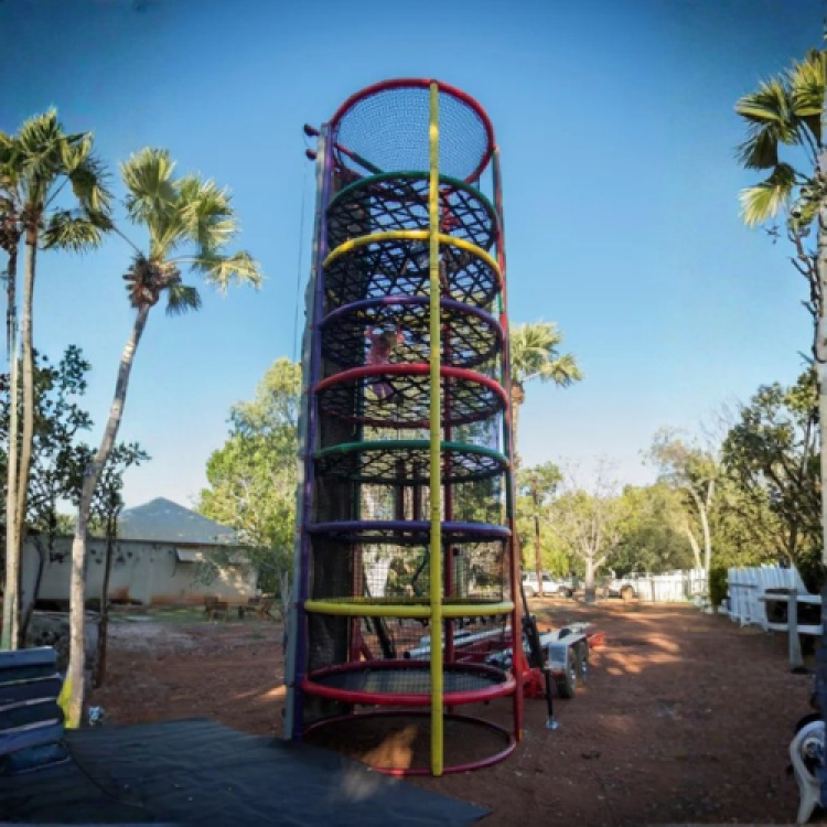 This activity is both challenging and rewarding as well as confidence-boosting. Up to 12 users (depending on weight) can climb in the spider mountain which is a series of levels of interwoven elastics that can be climbed through until the top is reached.