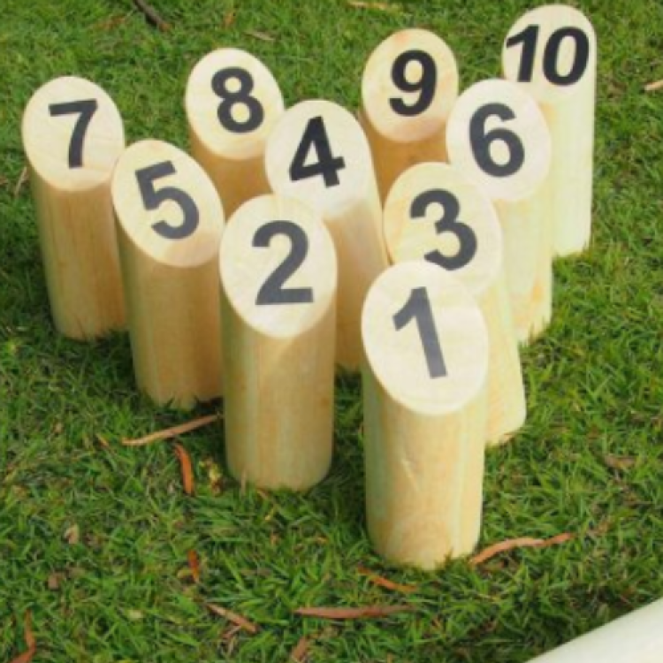 Place the pins upright on a level, open surface, think grass or smooth paving. Take turns tossing the wooden baton underarm toward the pins, aiming to knock down exactly one pin at a time for its number of points. Land precisely on 50 points to win, but overshoot, and your score takes a playful plunge back to 25. Always stand a safe distance away when it’s not your turn, use controlled underhand throws (no flinging!), and collect everything when the game wraps up so nothing rolls off into someone’s foot. Strategic, safe, and endlessly entertaining.