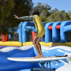 We do the work for you! Our trained staff will come and set everything up. Jump on and try not to fall off! The aim is to test your balance and stay on the mechanical surfboard for as long as possible.
