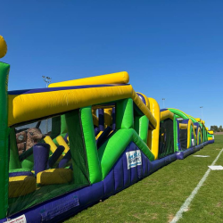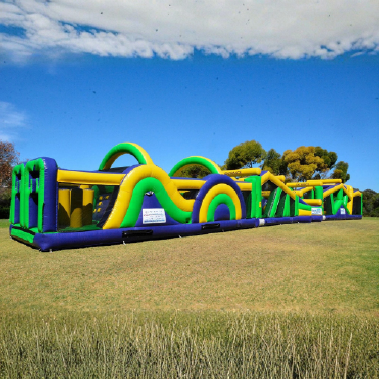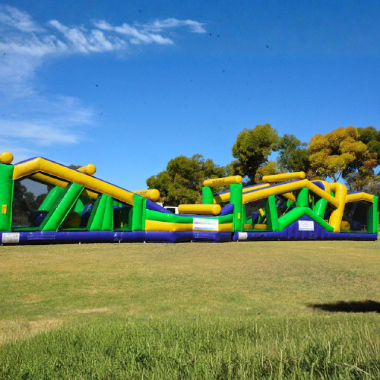 Our Commando Course is a high-energy, dry-only obstacle run stretching a massive 40 metres long, packed with climbing walls, pop-ups, tunnels, slides and twists to test your speed, stamina, and agility. Perfect for school sports days, community festivals, team-building events, or birthday parties, it’s non-stop action from start to finish. Challenge your mates, beat the clock, and see who’s the real commando! Big course. Big energy. Big fun. Dry obstacle only.