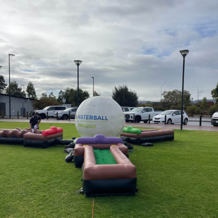 Unlike other inflatable mini golf courses, this inflatable is designed for patrons to walk around the putting surface, preventing their movements from disturbing the ball.