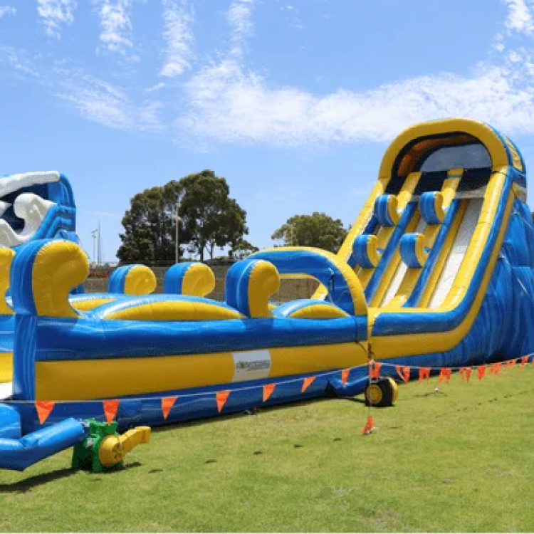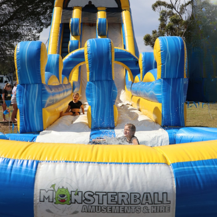 Bring big impact and even bigger fun to your next event with one of Monsterball’s largest and most impressive water slides. The 24ft Dive is a towering crowd-pleaser, stretching a huge 22 metres long and standing an epic 8 metres high, the kind of attraction kids spot from across the oval and sprint toward. This giant waterslide is built for high-energy action. Riders climb to the top, take a deep breath, and launch into a fast, exhilarating drop that ends in a massive splash pool at the bottom. It’s the perfect way for kids (and brave teens!) to cool off, burn energy and enjoy nonstop thrills all day long. Designed for school fairs, community festivals, summer activations, council events and big family fun days, the 24ft Dive draws crowds, keeps queues moving and instantly becomes the highlight of your event. Monsterball’s team handles delivery, setup and pack-down, so you can focus on running a smooth, unforgettable summer experience. Hire the 24ft Dive today or bundle it into an event package to create a full water-play zone. This is the slide that turns a sunny day into the best summer yet.