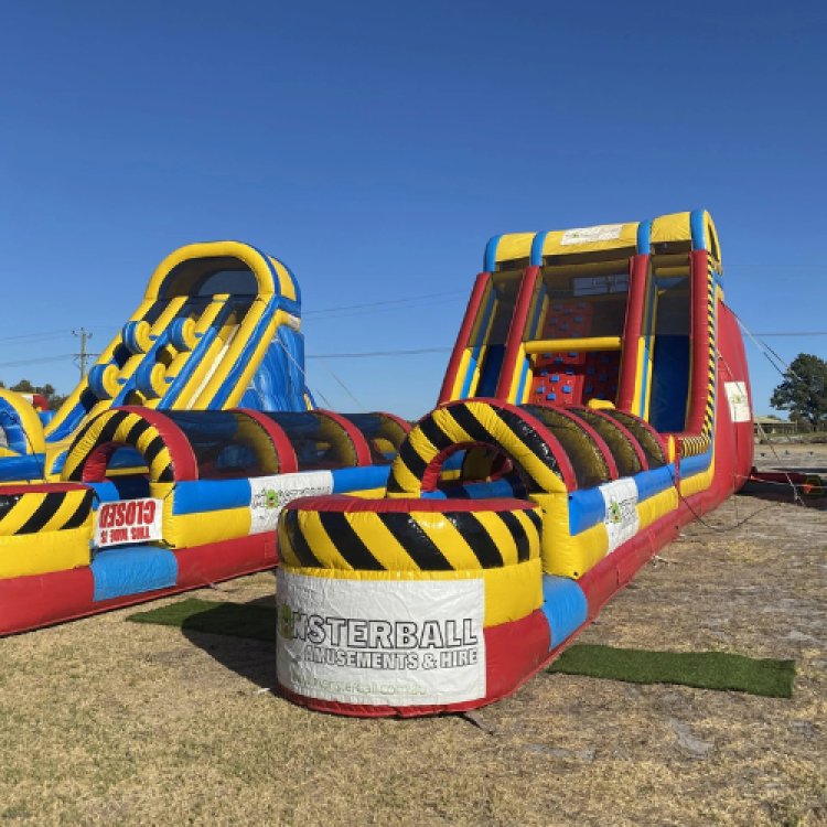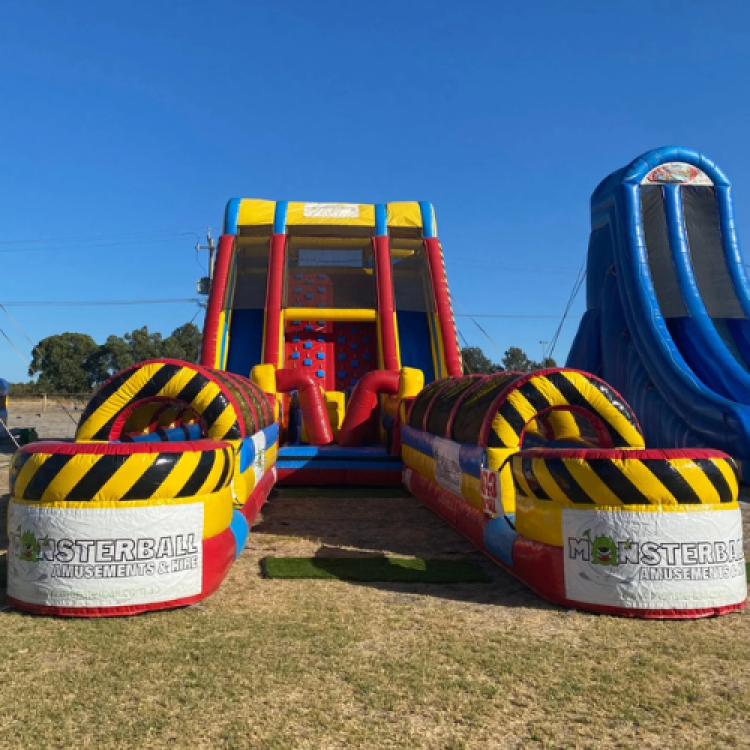 Using the thrilling slide from our popular DNA Challenge, we’ve supercharged the fun with the DNA XLR8R, an epic obstacle-meets-waterslide adventure. Tackle the inflatable challenges, conquer the rock climbing wall, then race your mates down dual slide lanes into the tunnelled slip ‘n slide finish! Whether you're hosting a summer school event, community day, or epic birthday party, this unit delivers non-stop excitement. 🚛 Vehicle access is required due to the size of the unit. Hire it solo or make it the centrepiece of a custom party package.