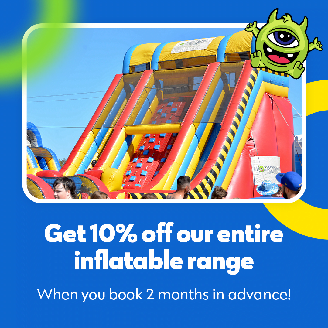 Get 10% off your inflatable hire when you book 2 months in advance or more!